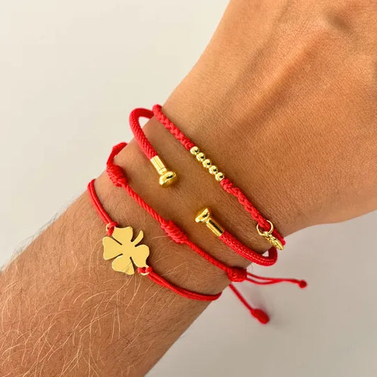 Pulseira Vermelha da Sorte em Trevo de 4 Folhas
