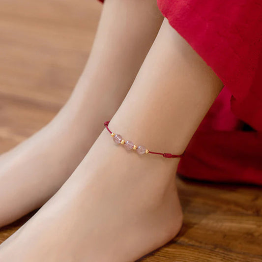 Tornozeleira Vermelha do Amor em Quartzo