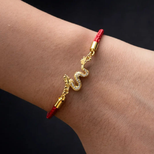 Pulseira Vermelha Dragão Dourado da Prosperidade