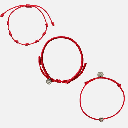 Oferta: Compre 1 Pulseira das Bênçãos em Cinábrio + 1 Pulseira com Conta da Sorte e ganhe 1 Pulseira Vinho da kabbalah