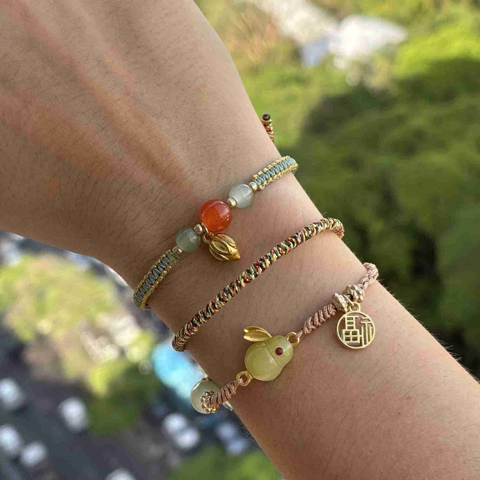 Oferta:Compre 1 Pulseira da Tranquilidade em Ágata + 1 Pulseira Coelho da Felicidade e ganhe 1 Pulseira Colorida Budista