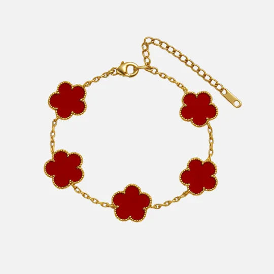 Esta pulseira é um amuleto moderno de equilíbrio e proteção. Inspirada no símbolo ancestral do trevo de quatro folhas, ela reúne cinco emblemas que representam boa sorte, fluidez e completude.
